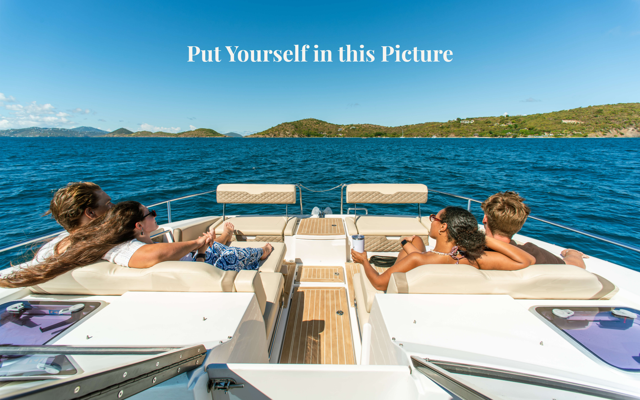 Enjoying a luxurious day on Topic Pear in clear turquoise waters.Two friends are enjoying cocktails on a sunny boat trip, surrounded by clear blue waters and lush greenery.Enjoy a luxury day charter cruising through the ocean.